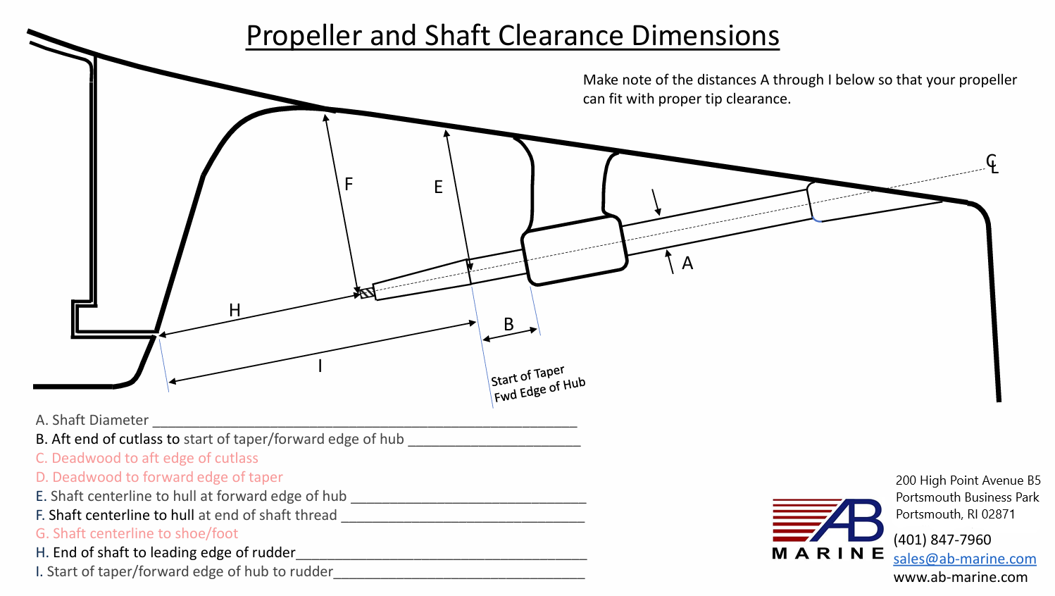 Make note of the distances A through I below so that your propeller can fit with proper tip clearance.